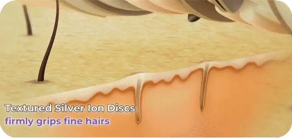 The device features many mechanical discs which open and close as you gently glide it over your skin. This allows them to adapt to the thickness of your hair, thick or thin, to pull it from the root - without touching your skin. The length of your session varies based on the size of the treatment area, ranging from seconds to a few minutes. This slows down hair regrowth, which can take up to four weeks, as Pluxy influences your body's natural hair growth cycle.